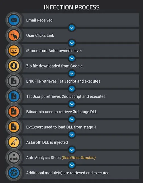 Analysis of an Astaroth malware dropper delivered via a phishing e-mail, found while working as a SOC Analyst.
